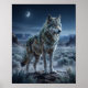 A noble sage wolf stands alert beneath moonlight on an open desert plain where wisdom and wilderness power become one. Realistic wolf anatomy merges with sagebrush leaves, dry flora textures, silver-green fur, and refined botanical detailing across the mane, chest, shoulders, and tail. Distant mesas, drifting dust, pale sand, stars, and cool moonbeams create a cinematic atmosphere of calm strength. This premium fantasy design adds masculine elegance to offices, cabins, studios, or gift collections. Perfect for wolf lovers, rustic decor fans, and statement interiors.