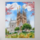 Este material impreso en color agua muestra la Sagrada Familia en Barcelona, España.