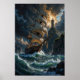 A dramatic ship braves towering waves and stormy skies in this stunning maritime fantasy scene. Ideal for those who love nautical adventures and epic journeys.