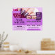¡Lleva tus esfuerzos promocionales de la sala de clavos al siguiente nivel con este fantástico poster de Nail Salon! Este poster que atrae la atención es esencial para los técnicos de uñas, manicuristas y artistas de uñas que quieren resaltar su experiencia y atraer nuevos clientes. Nuestra plantilla poster horizontal muestra un cautivador matiz de morado y rosa que irradia elegancia y capta la atención. Usted puede personalizar fácilmente al poster con la información de contacto de su salón, incluyendo la dirección, número de teléfono y sitio web. Con esta plantilla de poster de Purple Nail Salon, dejarás una impresión duradera en tu comunidad local.