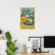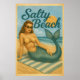 Póster Salty Beach Pin-Up Mermaid -Retro Coastal Life Art