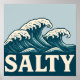 Giant whitecap waves roll toward the beach in this retro style coastal graphic. Cream vintage SALTY text makes a bold contrast against the teal blue ocean and pale blue sky. Made for beach bums, surfers, sun seekers and anyone living on island time. This poster art is a great way to add seaside vibes and ocean energy to your home decor.