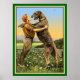 Este es un hermoso cuadro de un perro de época con un Wolfhound irlandés saludando a su dueño. Artista desconocido.