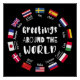 Alegre tema de viajes mundiales con saludos en diferentes idiomas con banderas de los países. Perfecto para viajeros, amantes del lenguaje y amantes de la cultura que disfrutan de la diversidad internacional.
