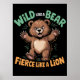 Este ilustracion dinámico tiene un oso tierno y ruidoso con sus patas levantadas, mostrando sus garras. El texto "SALVAJE COMO UN OSO" aparece de forma destacada encima del oso en verde, mientras que "FIERZA COMO UN LEÓN" se escribe debajo en un naranja vibrante. La expresión del oso es lúdica pero poderosa, encarnando tanto la naturaleza como la ferocidad. El diseño general sugiere fuerza, coraje y un espíritu inamovible, con un toque de diversión.