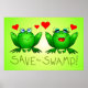 poster de 24" x 16", personalizado verde rana Twitchy y Beulah con corazones rojos. Puede obtener este poster en tamaños mayores o menores si lo desea, o en diferentes tipos de papel. Los humedales, como los pantanos, los bogs, las marismas y las gallinas, son vitales para un medio ambiente saludable. Una parte de los ingresos de cada producto "Salven el pantano!" se destina a la educación ambiental y la conservación de los humedales. Por favor visite http://www.happywishingwell.com/save-the-swamp.html para más información y tenga un día de espera!