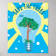 Póster Ambiental de Bombilla Salvar Los Árboles. Este hermoso diseño presenta un árbol dentro de una bombilla. Personalice este diseño personalizado con su propio texto.