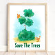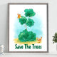 Póster Salvar Los Árboles Jardín Aves Ambiental