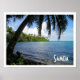 Fotografía del Océano Pacífico de la costa samoana enmarcada por una palmera inclinada. Texto del personalizable, "Samoa".