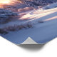 Impresionante puesta de sol de montaña con árboles nevados, arte digital festivo, perfecto para la decoración de la TV Frame de vacaciones.