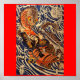 Póster Samurai luchando contra un gran reptil, alrededor