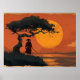 Póster Samurai Under Sunset Tree in Traditional Japanese