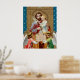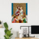 Esta huella devocional de fines del siglo XIX en Europa del Este representa a San José sentado en un trono dorado que recibe una maqueta arquitectónica o un modelo miniaturizado del Vaticano que simboliza la Iglesia desde dos ángeles arrodillados. En la rodilla de San José está el Niño de Cristo como niño pequeño. El Niño Jesús levanta su mano derecha en bendición y sostiene un rociado de lirios que simbolizan la pureza en su izquierda. Las manos de San José rodean al niño de forma protectiva como metáfora visual de su papel como protector de la Iglesia. + San José está vestido con una bata azul-violeta que está sombreada en púrpura rojizo y un manto marrón resaltado en tonos amarillo-naranja; el Niño Cristo, una túnica blanca con guarnición amarilla; y los ángeles, en dálmatas rojas y verdes complementarias. + Principal Fiesta de San José: 19 de marzo; Festividad de San José el trabajador: 1 de mayo + Crédito de la imagen (M 037): Imagen antigua de San José [Svatý-Josef], impresa originalmente en cromolitografía por Koppe Bellmann, Praga, Checoslovaquia (ahora República Checa), a finales del siglo XIX, del privado del diseñador. colección de ephemera religiosa.