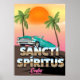 Sancti Spíritus Cuba estampado de afiches de viajes en auto vintage.