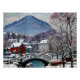 "Sandvika" es un cuadro evocador que capta la serena belleza de la aldea noruega de Sandvika. Este trabajo ejemplifica la capacidad de representar paisajes naturales con un toque impresionista característico. El cuadro presenta una tranquila escena en la orilla del río, con un pequeño pueblo enclavado entre colinas y árboles cubiertos de nieve. El río, probablemente el Sandvikselva, es central en la composición, reflejando el cielo y el paisaje circundante. El uso de una paleta de colores fresca, dominada por blancos, azules y grises, transmite efectivamente la atmósfera fresca y nítida de un día de invierno. Las pinceladas son sueltas y fluidas, capturando el juego de la luz sobre la nieve y el agua. Los edificios del pueblo están decorados con líneas suaves y difusas que se mezclan armoniosamente con el paisaje de los alrededores. El efecto general es de tranquilidad y belleza tranquila, típico de la capacidad de transformar escenas cotidianas en obras de arte cautivadoras. "Sandvika" es un testimonio de la versatilidad y profunda apreciación de los paisajes variados que se encuentran en Noruega. Refleja la maestría en captar los efectos transitorios de la luz y el tiempo, y la habilidad en transmitir el estado de ánimo sereno y contemplativo de un paisaje invernal.