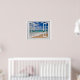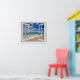 Relajantes vistas a la playa y al océano, escenas de ventanas falsas, para una pared de oficinas sin ventanas. Divertido, realista poster óptico de ilusión para una oficina o pared de estudio.