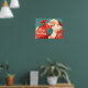 Santa Claus joyfully getting ready to deliver Christmas presents. Festive and warm holiday scene in classic Christmas colors.