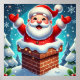 Un alegre Papá Noel sonriendo y saludando desde una chimenea cubierta de nieve en medio de una escena de invierno, se esparce