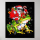 Póster Santa Riding Frog Christmas Lights Funny Xmas Tree