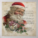 Santa sobre un fondo musical sosteniendo juguetes en su mano junto con algunos Navidades sagrados. La música es Noche Silenciosa, Noche Santa. Esto sería lindo enmarcado y colgado en la pared al lado del árbol de Navidad o mostrado en una habitación para niños.