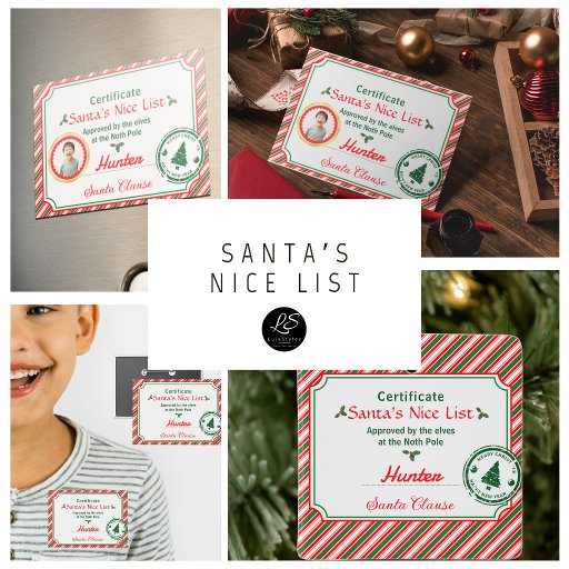 Póster Santa's Nice List Certificate Red Green Candy Cane