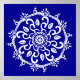 Esta mandala blanca se sienta sobre un fondo azul intenso y profundo. Los colores son inteligentes e introspectivos. Parte de la colección Payon Mandala.