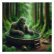 Sasquatch Bigfoot en el bosque tomando un baño rodeado de altos pinos del bosque poster. ¡Perfecto para los aficionados a los pies!