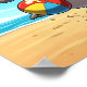 An adorable picture for a child's room. A cute cartoon of a sassy seal playing with a beach ball on the sea shore.