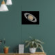Vista de Saturno con anillos y aurora de polo sur (luces) presente.