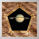 Aquí hay una gran imagen de Saturno a través de una ventana en una pared de ladrillo. Este sería un regalo perfecto para cualquiera que ame la astronomía y la ciencia.