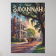 Diseño de viaje vectorial retro de Savannah. Savannah, Georgia, es una histórica ciudad del sur conocida por sus calles bordeadas de robles, su arquitectura antebellum y su encanto costero.