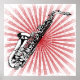 Póster Saxofón en la ráfaga de sol rojo Grunge