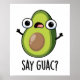 Say Guac Funny Aguacate Pun presenta un lindo aguacate diciendo "¿decir qué?". Perfecto regalo de Puns para la familia y amigos que aman los lindos juegos de guacamole.