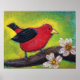 Los machos Scarlet Tanagers están entre los más hermosos del bosque oriental. Tienen cuerpos rojos ricos y alas negras. Esta es una obra de arte de medios mixtos sobre lienzo con textura.