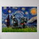 Póster Scottish Terrier (dos negros) - Noche estrellada