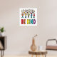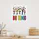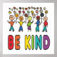 El diseño de Be Kind consiste en un grupo mixto de muchas personas sobre el mensaje "Be Kind" en colores arcoiris. Una imagen étnicamente diversa para sugerir y apoyar la bondad entre todas las personas.