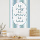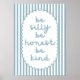 Trae positividad e inspiración a tu espacio con este Be Silly Be Honest Be Kind en tranquilizantes tonos azul-verde. Perfecto para habitaciones, oficinas, o como un regalo para los amigos, la familia o cualquiera que ame las citas edificantes.
