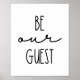 Este diseño se compone de la frase "Be Our Guest" (Sé nuestro invitado), que es un arte de pared poster de la tipografía que presenta un diseño limpio y moderno, perfecto para iluminar y añadir algo de personalidad a cualquier espacio. Esta hermosa impresión puede ser personalizada añadiendo su propio texto personalizado, así como cambiando los colores. Este diseño tiene un toque moderno y se vería bien en un moderno apartamento o en un loft.