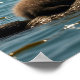 Póster Sea Otter Mom & Pup Floating in Sparkling Ocean