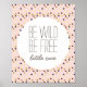 Un divertido estampado para la pared infantil de su bebé que dice: "sé salvaje, sé libre, pequeño" en modernos tipos de letra mixtos de tipografía contemporánea centrada en un círculo blanco sobre un fondo rosa claro decorado con puntos de confeti dorados, marrones y beige por todas partes. El gran estilo neutro funciona para la decoración de cualquier niña, y el color de fondo se puede personalizar fácilmente para que coincida con cualquier esquema de color. Hace un gran recién nacido o una ducha para bebés.