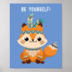 El zorro indio con fondo azul desafía a los niños a "¡SEA USTED MISMO!" o su mensaje personalizado. Gran decoración de habitación para niños.