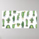 Seamless pattern with green cactus and succulents on white background. Vintage print with cactuses succulents