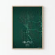 A stunning art print of Seattle Map rendered in a vibrant Emerald City color palette. Every street, highway, and waterway is mapped in fine detail against a rich emerald background. Perfect as a statement piece for your home, office, or as a gift for any Seattleite.