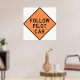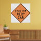 Seguir la señal del coche piloto en un fondo naranja. Este diseño parece realmente efectivo en este Poster