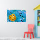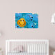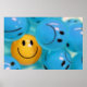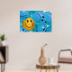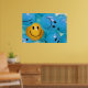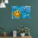 Un poster Inspirador que representa una sonriente bola amarilla en un mar de fruncidas de ceño azul y que representa la importancia de mantener un sentido de optimismo y humor.