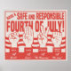 Un diseño de poster de seguridad retro parodia del 4 de julio, con las manos 'tijeras de papel de rock', con una mano extra (¡4th!), sin dedos, etiquetada como "bomba de cerezo". Camisetas, posters, artículos de regalo de novedad.