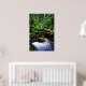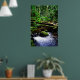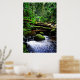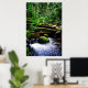 Una vívida captura de color que representa la famosa selva tropical de Australia con el exuberante subcrecimiento verde evidente en el fondo con un pequeño arroyo en el centro. Sale de la cala con rocas de color marrón y troncos que cambian el curso del agua