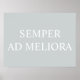 Impresión motivacional con la frase latina ‘semper ad meliora’. Una frase popular en la Antigua Roma, la traducción es "siempre hacia cosas mejores". Nos recuerda que nos centremos en avanzar hacia cosas mayores sin mirar hacia atrás. La letra de la nota de arte tiene un toque clásico que evoca inscripciones públicas romanas. La impresión tipográfica presenta texto blanco crudo sobre un fondo gris. Al ser inspirador y elegante, esta impresión de arte hará que su hogar sea un buen complemento.