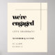 Estamos comprometidos: señal de bienvenida de la fiesta de compromiso. Minimalista pero sorprendente: adoptar este diseño tipográfico ligeramente retro para su papelería boda, con un elegante color crema. Personalizable completo de texto, colores y fondos.