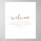 Le hemos dado a esta sencilla y animada pareja una plantilla poster de bienvenida con un toque de dolor de cabeza con "Bienvenida" en un estilo moderno. Nos encanta el estilizado y alargado florecimiento en ambos extremos de la palabra. Este y el otro texto es un elegante tono dorado llamado California Gold. Utilice las herramientas de edición intuitivas para personalizarlo y hacerlo exclusivo. La parte de bienvenida del diseño no se puede modificar, pero además de editarla para mostrar sus propios detalles, puede que desee cambiar la redacción para adaptarla a su estilo. Por ejemplo, en lugar de "a nuestra ducha de boda", puedes llegar a "ducharnos a nuestras parejas" o algo más. También puede cambiar el formato básico de la fecha, etc. Y también puede cambiar el color, la fuente y el tamaño del texto bajo 'bienvenido'. Consulte nuestra colección de signos de bienvenida de boda para obtener formas más sencillas y elegantes de dar la bienvenida a sus huéspedes, no sólo a sus parejas que duchan, sino también a su día de boda y otros eventos especiales que los conduzcan.